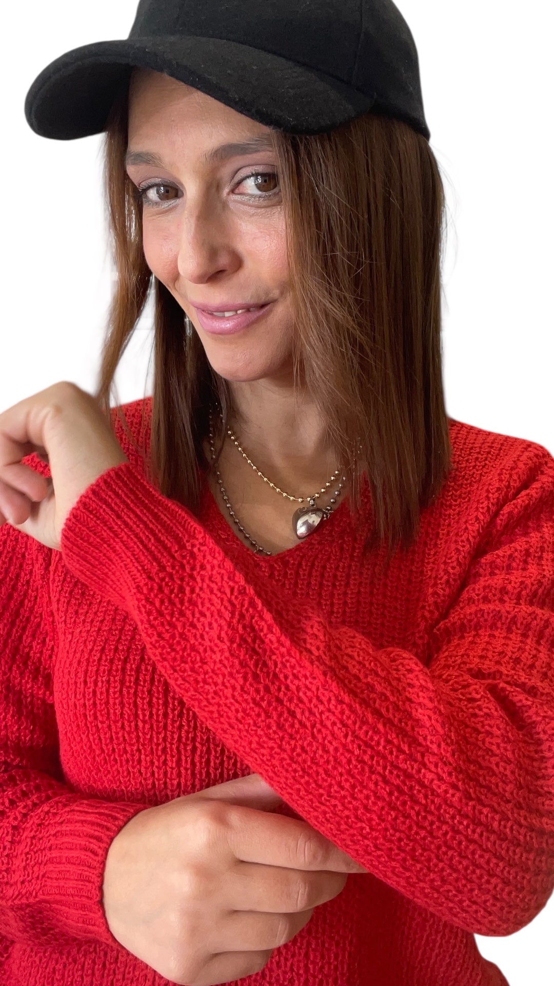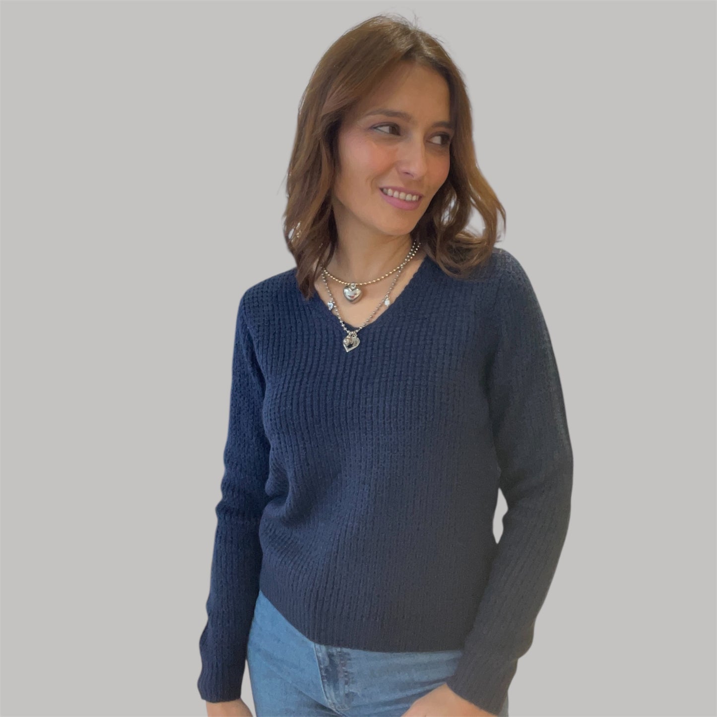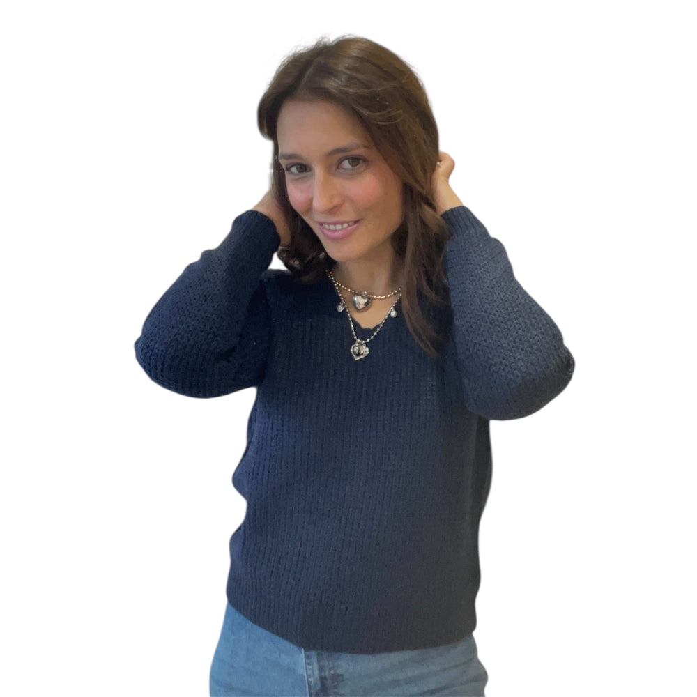 Pulôver em Malha com Decote V e Pesponto em Relevo