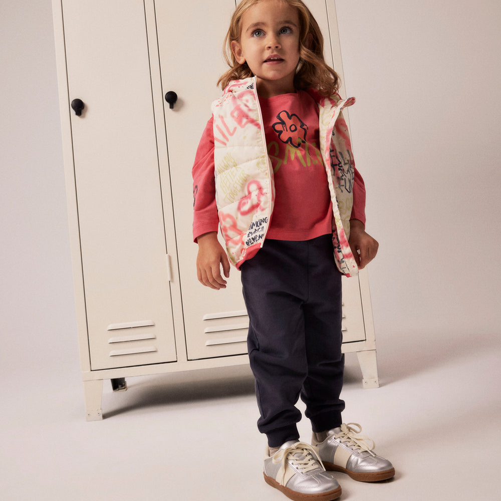 Colete de Menina com Padrão Grafiti e Capuz