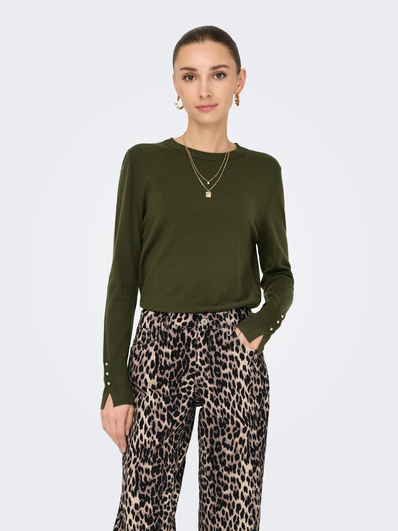 Malha feminina elegante com decote redondo e acabamento sofisticado nos punhos com botões dourados. Confeccionada em malha macia e confortável, é perfeita para looks casuais ou mais arrumados. Ideal para dias frescos, essa peça une conforto, estilo e detalhes que fazem a diferença. Essencial no guarda-roupa feminino.