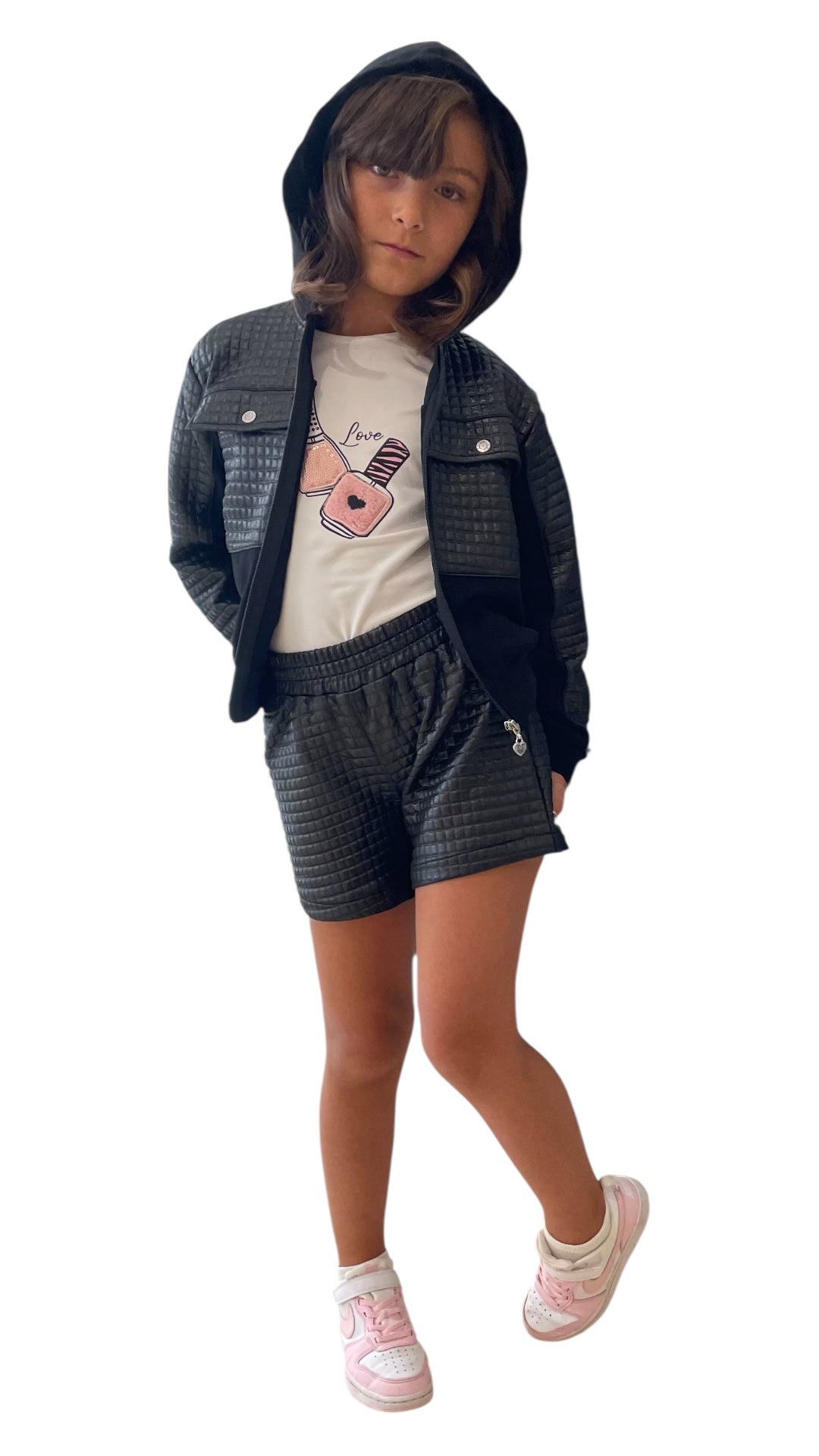 Casaco Curto com Capuz e Detalhes em Polipele – Menina dos 4 aos 10 Anos