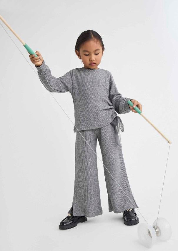 Camisola de Malha Canelada com Tule Lateral – Menina dos 4 aos 12 Anos