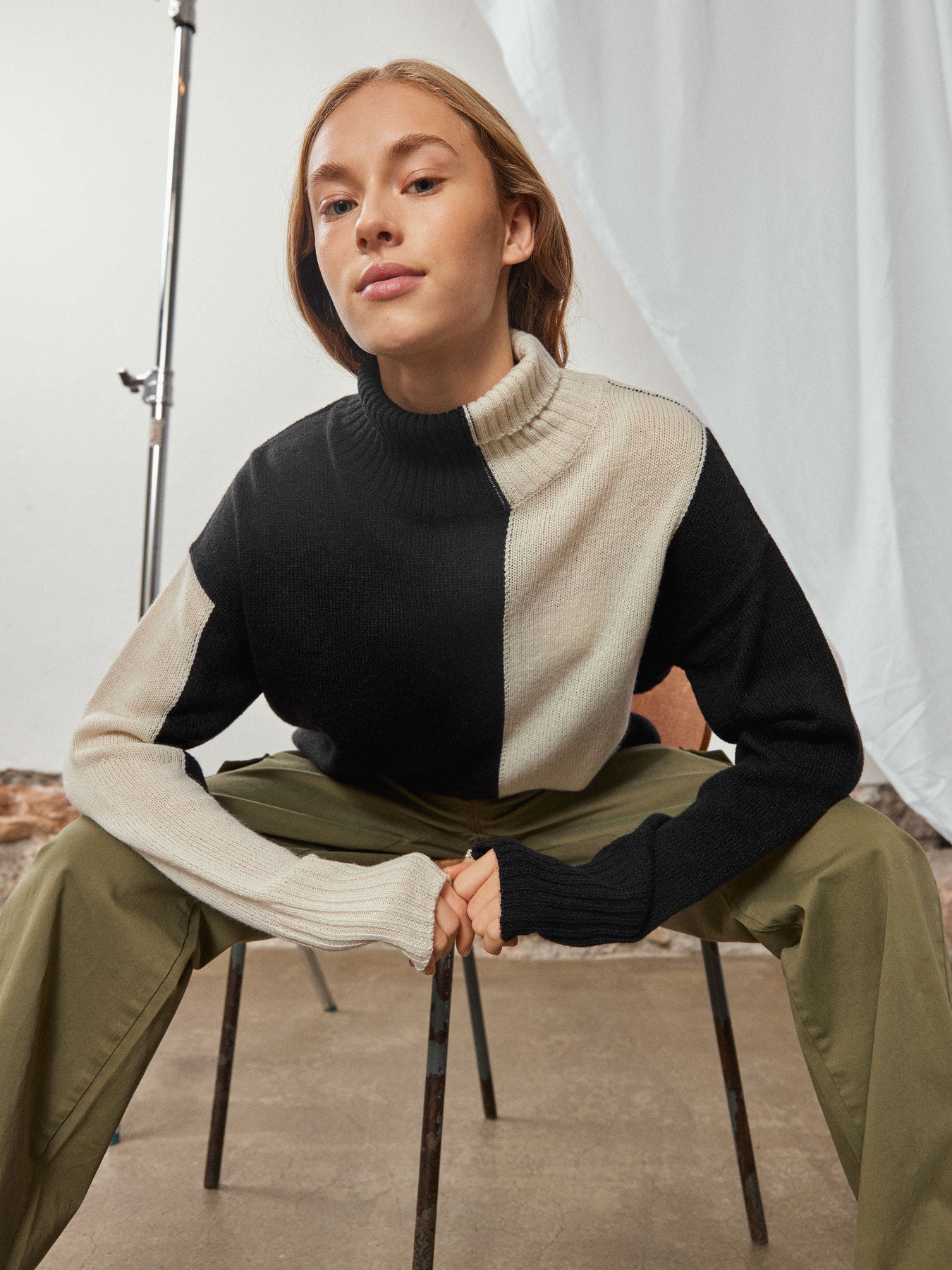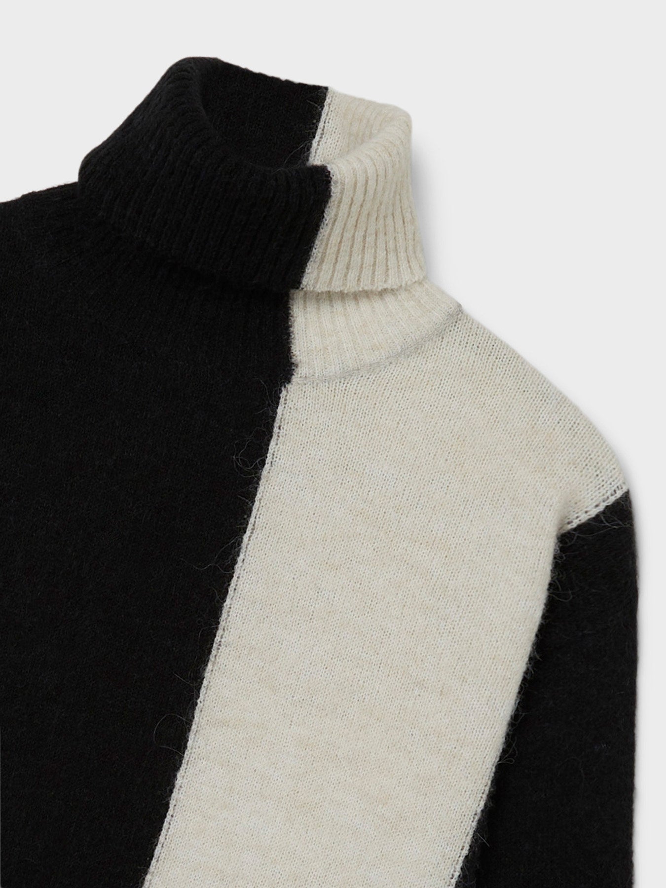 Malha de Rapariga com Gola Alta e Blocos de Cor