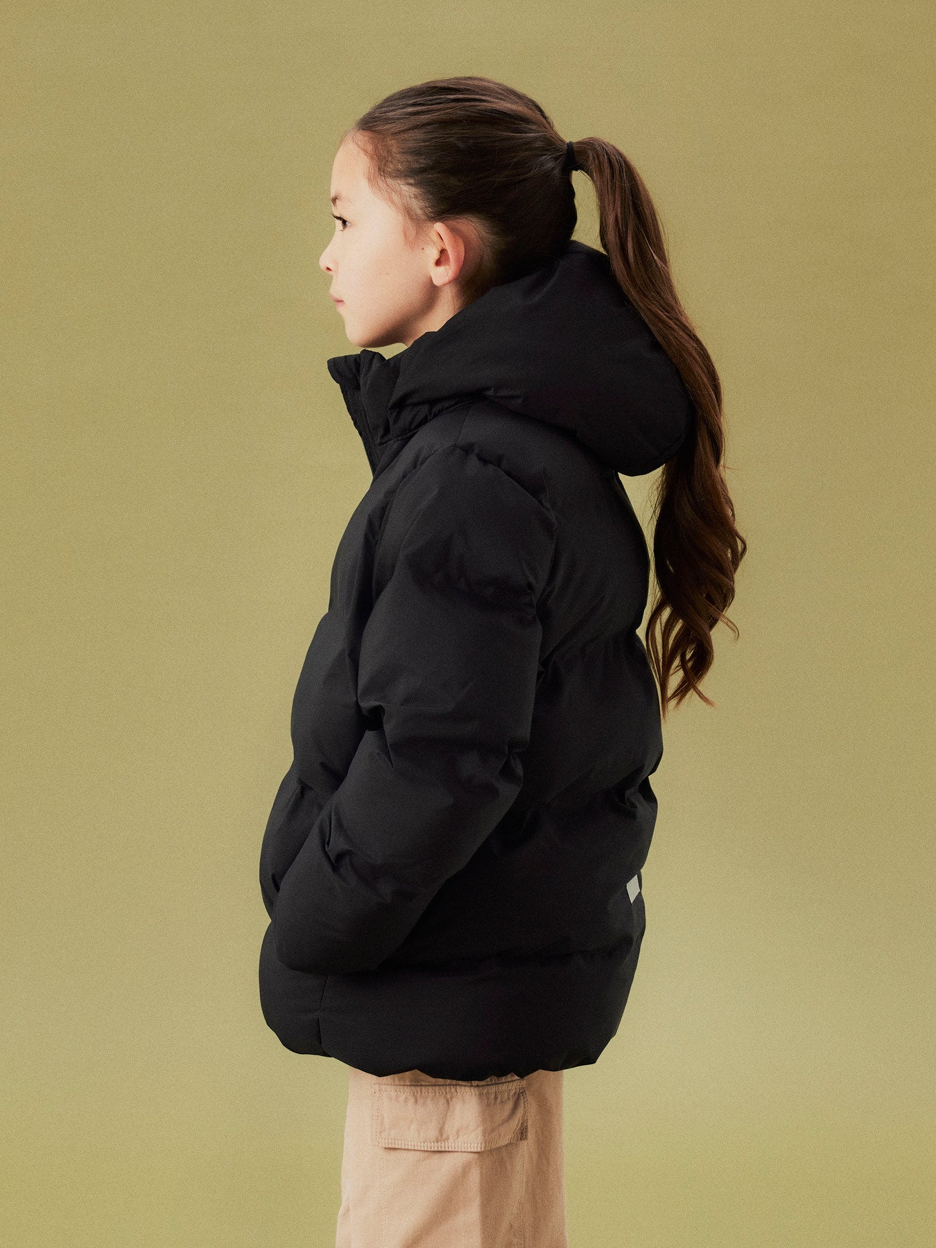 Feita com 100% poliéster reciclado e livre de compostos fluorados (PFAS FREE), é uma opção mais sustentável para o guarda-roupa das crianças.