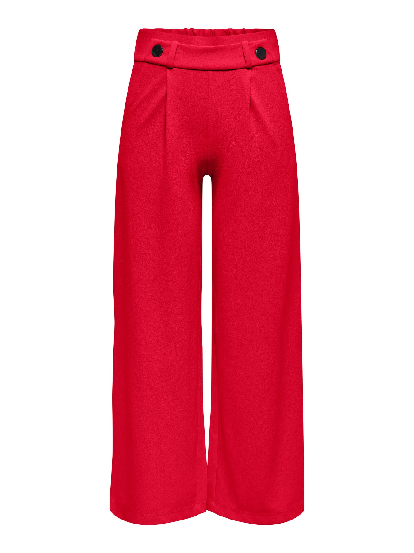Encontre o equilíbrio perfeito entre estilo e conforto com estas calças de perna larga. Confeccionadas em jersey macio com poliéster reciclado, oferecem um caimento leve e flexível. Cintura elástica na parte de trás, bolsos frontais e detalhe de botão dão um toque moderno. Ideal para looks casuais com sapatilhas ou um visual sofisticado com top festivo e saltos. Uma peça versátil para qualquer ocasião.